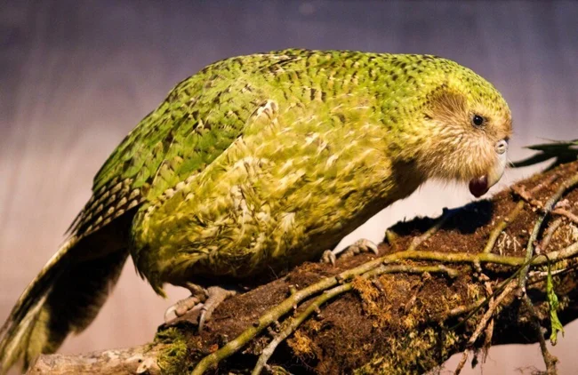This is a kakapo, the largest parrot in the world, it is so heavy that it cannot fly. The weight of an adult male is approximately 4 kilograms.