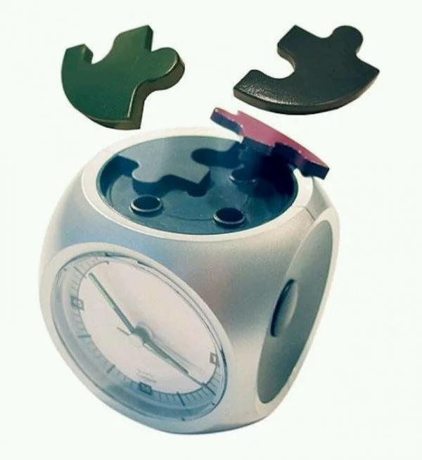 When it's time for you to wake up, the puzzle pieces will fly out of the top of this alarm clock and scatter throughout the room. And to turn off the alarm, you need to collect all these puzzle pieces and put them back. This can hardly be called a complex puzzle, because there are only 4 parts. But first you need to find these details... And this is not such an easy task, for example, at six in the morning.