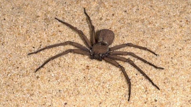 Sand spiders, Sicarius terrosus, live in barren deserts and can partially burrow into sand.