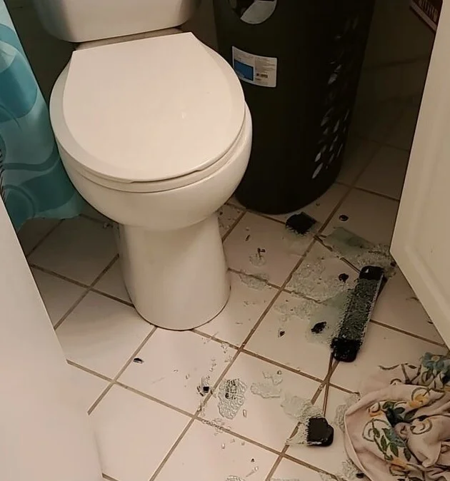 Mom dropped a jar of sugar, and now we are afraid to pick it up