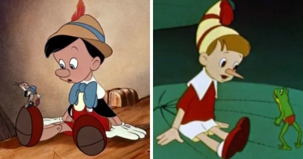 The two big-nosed wooden guys are so similar, and it’s not surprising, because “The Golden Key, or the Adventures of Pinocchio” by Alexei Tolstoy is a literary adaptation of Carlo Collodi’s fairy tale “The Adventures of Pinocchio. The history of a wooden doll." The Disney cartoon appeared in 1940, the Soviet one in 1959.