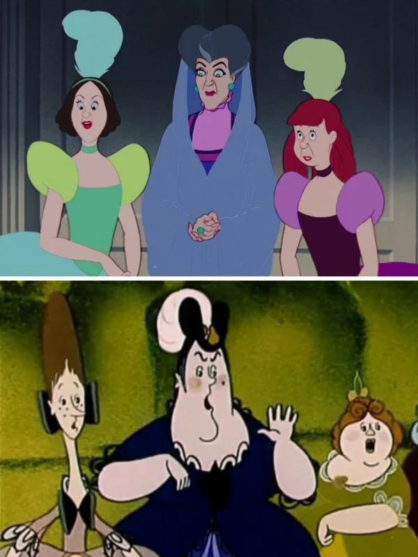 Agree, there are similarities here too, although the Disney prince’s hair is much shorter, and in the Soviet version the stepmother became more curvy, and the sisters became more dissimilar.