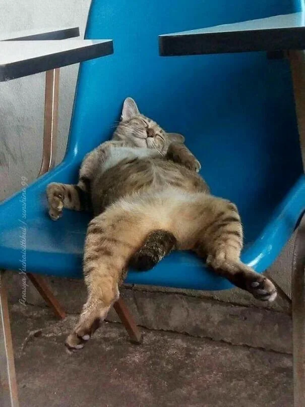 Cats are still sleepyheads. They spend most of their lives sleeping or half asleep - on average, they spend 16 hours a day in this state. At the same time, they are also capable of passing out almost anywhere if the need arises. Either in a dresser drawer or in a flower pot!