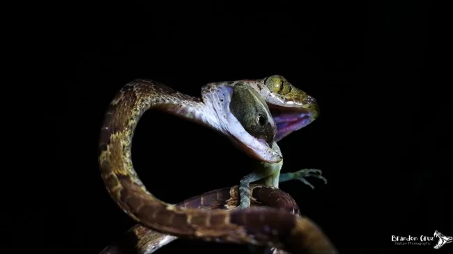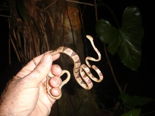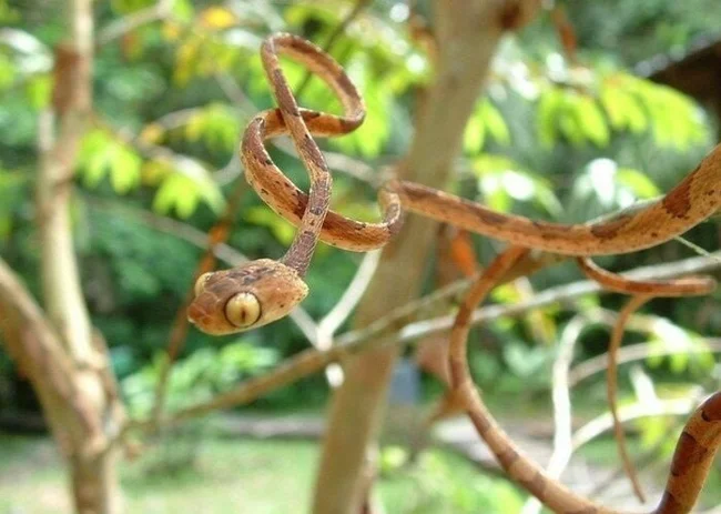 Let's start with something common. For example, the snake lives in central America and in the northern part of South America, from the south of Mexico and right up to the north of Argentina. Climbing bushes and branches like Tarzan is a quite common activity for tree snakes. That's it, the usual descriptions end here, what follows is complete trash.