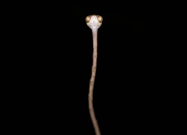 Her head consists of 25% eyes, and her 2 meter body is only 1.5 centimeters wide!