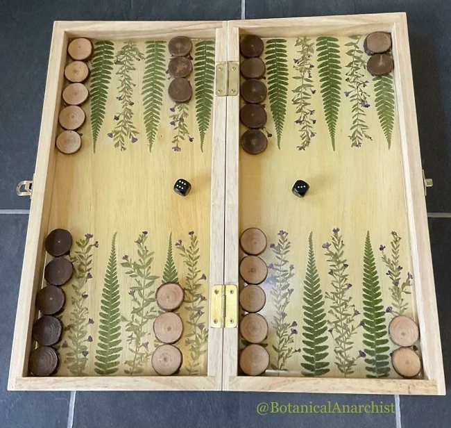 24. “Just finished my biggest and most complex backgammon board yet with real fern leaves and flowers.”