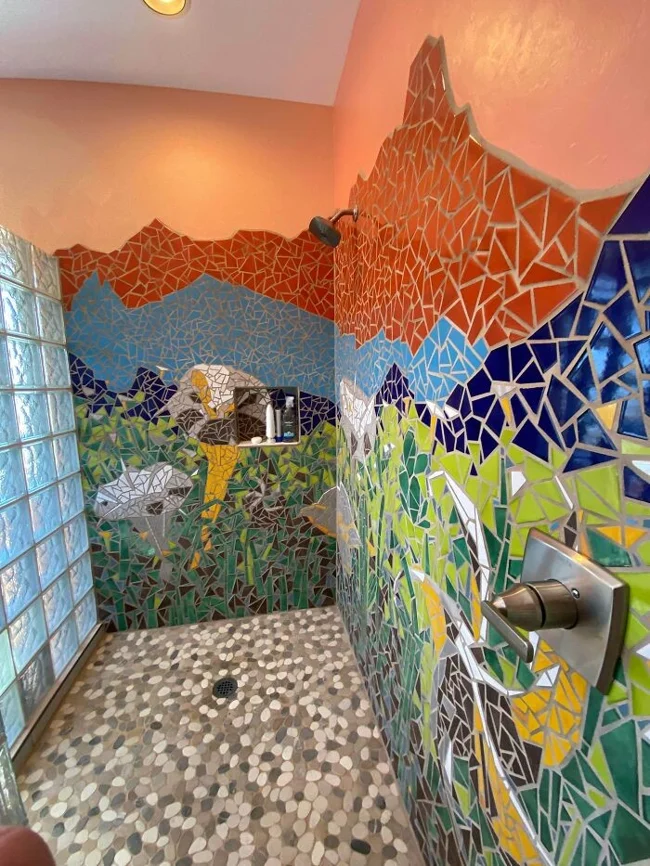 25. "Finally completed the mosaic in my mom's shower! 5,000 individually cut tiles and a year of work."