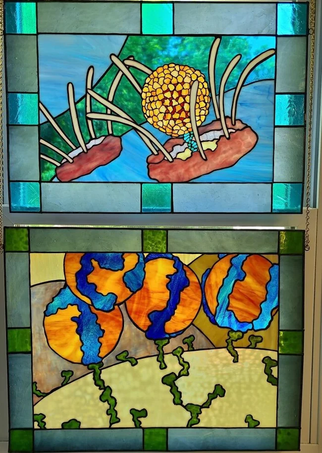 35. “I made stained glass windows on cell biology to hang behind me during work Zoom calls.” ![]()