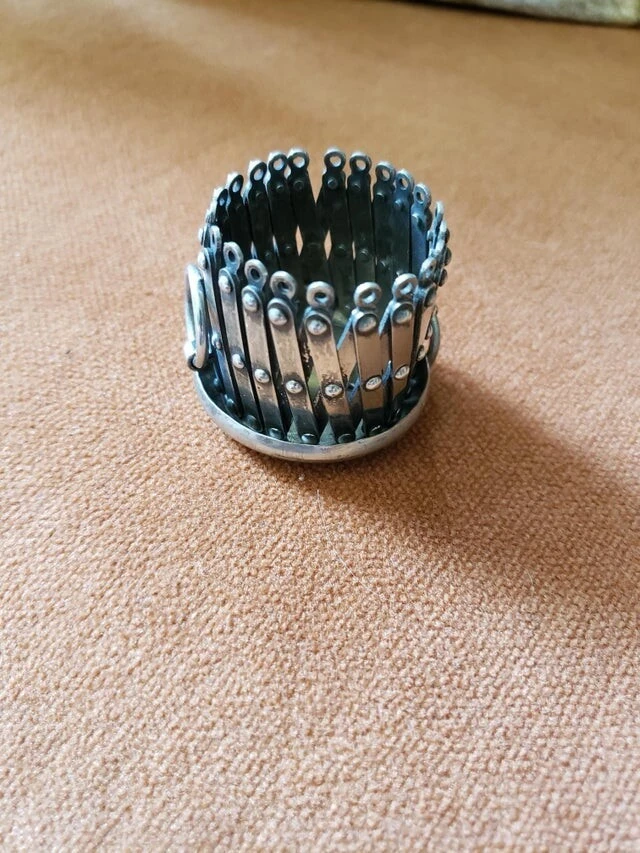 Expanding metal ring with decorative cap and handles