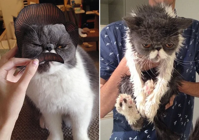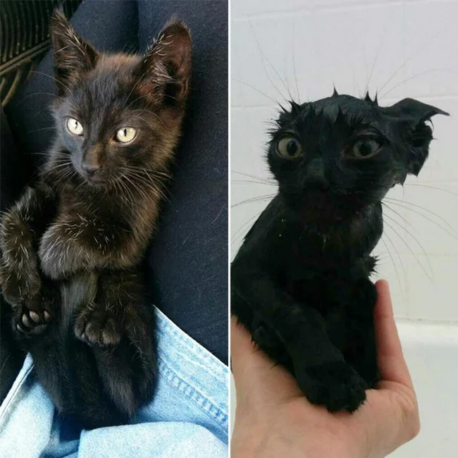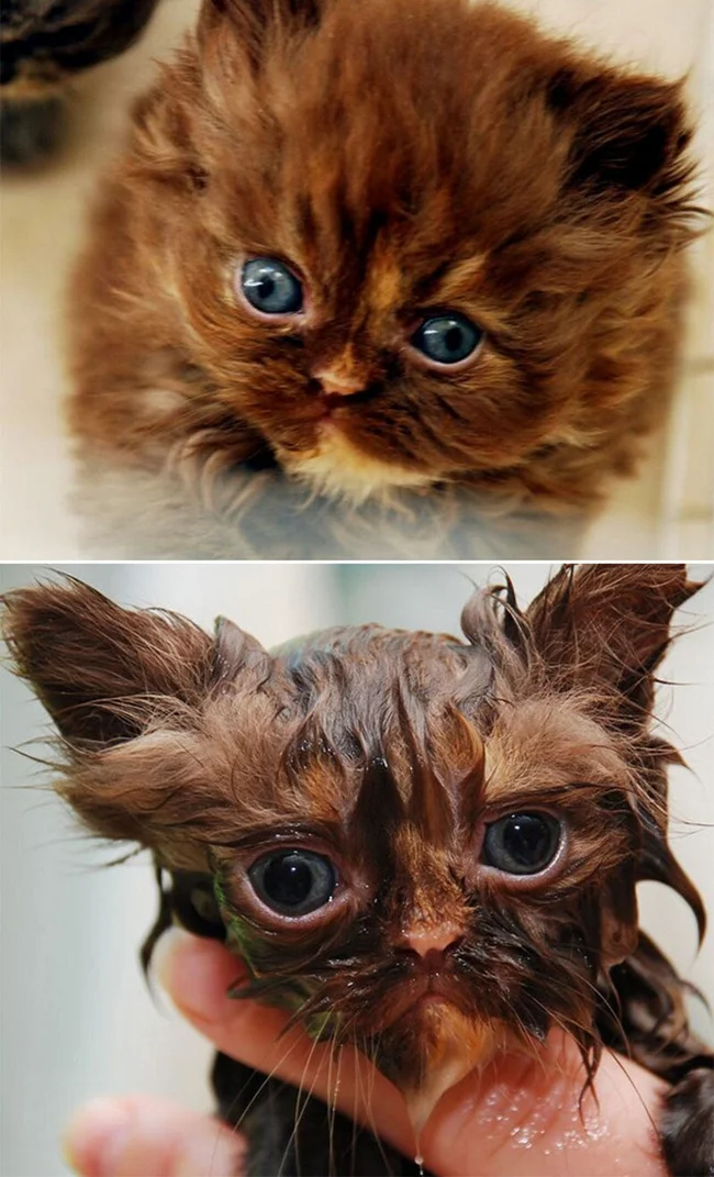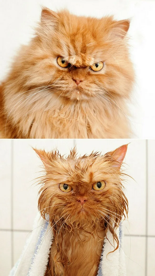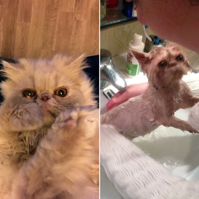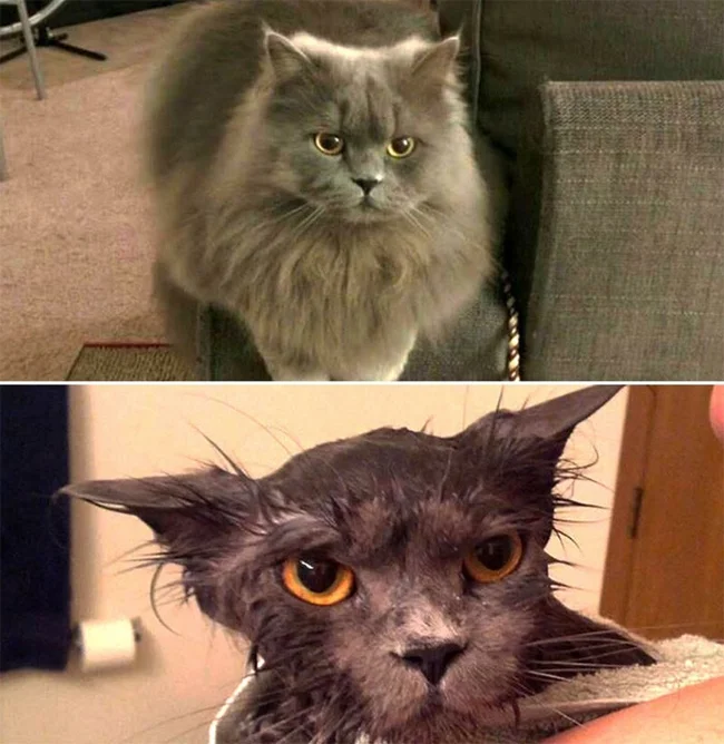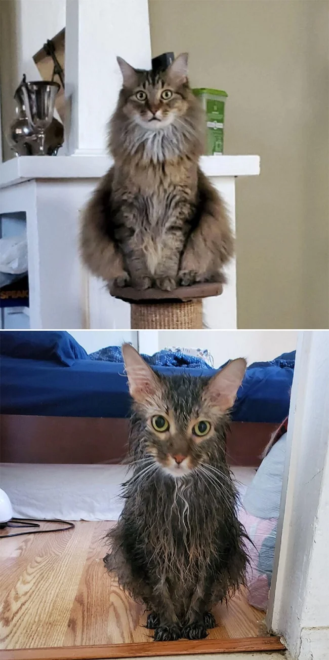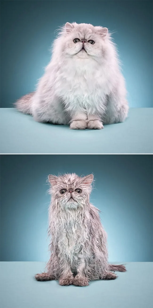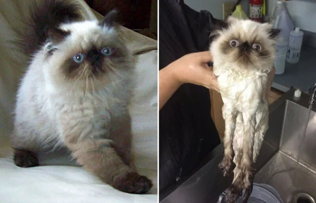 In addition, wet fur is very inconvenient to groom: it is heavier, which means the cat will become less agile