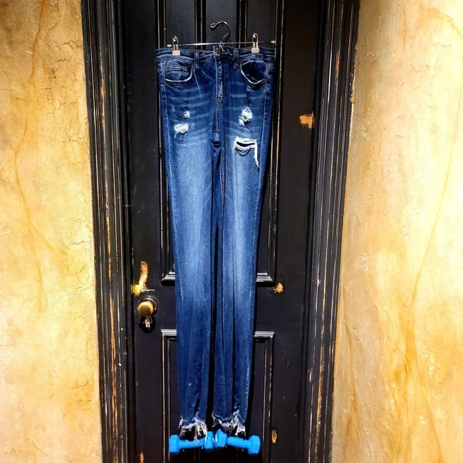 It looks ridiculous, of course, but this method helps stretch the jeans and give them extra length. What to do if you can’t find what you need in stores during the day?