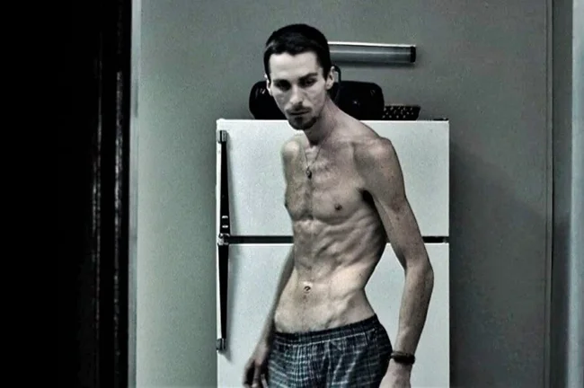 It's not just stupid teenage girls who drive themselves to exhaustion due to dissatisfaction with their supposedly fat figure. Christian Bale will give any nymphet a run for his money. A tall, strong man over 180 cm tall lost weight for the role in the film “The Machinist” from 84 to a critical 55 kg!