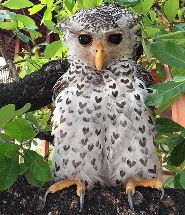 4. Owl with a pattern of hearts on its feathers