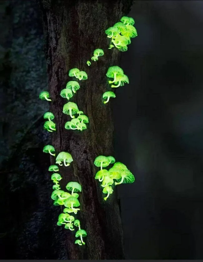 11. Stunning Forest Glow Mushrooms: Among the hundred species of bioluminescent mushrooms. They usually grow in Asia