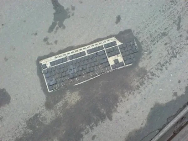 The asphalt has worn off, but the keyboard has not. What is it made of?