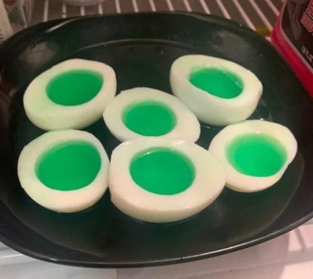 Jelly in egg whites is an old topic. But green looks unappetizing.