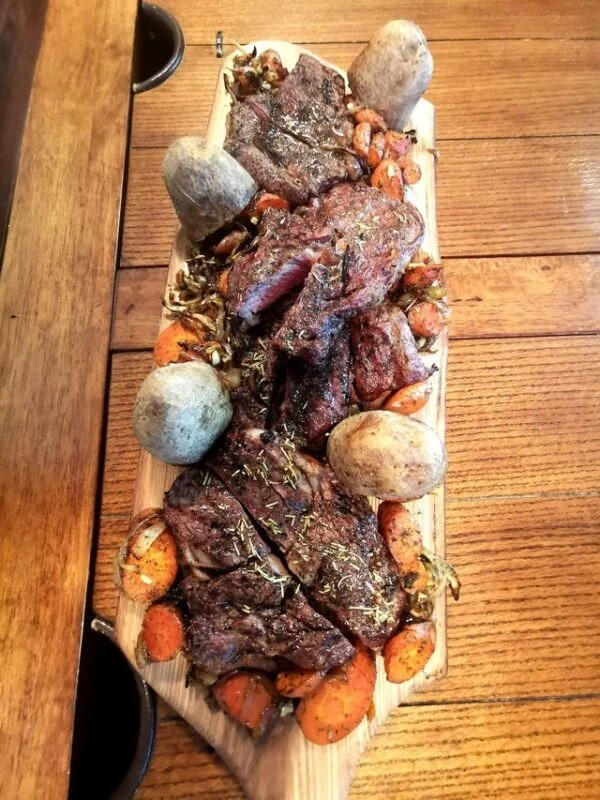 The shovel is quite an old and popular theme in restaurants. But it is better to use agricultural tools for their intended purpose.