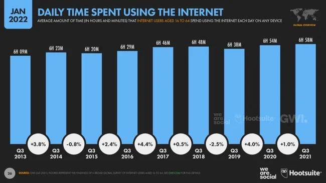 Research shows that the “typical” global internet user today spends almost 7 hours a day using the internet across all devices.