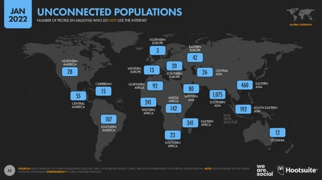 More than 1 billion people in South Asia and almost 840 million in Africa are still not using the Internet. However, despite the fact that China accounts for approximately one-fifth of all online users, more than 400 million Chinese are still not connected to the Internet.