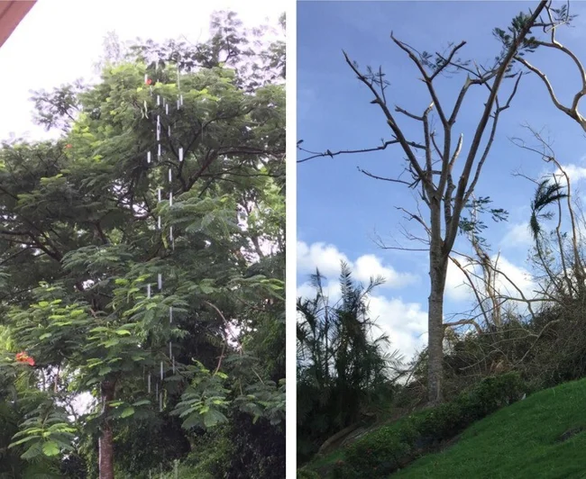 7. "The backyard of my grandmother's house in Puerto Rico before and after Hurricanes Harvey and Irma."
