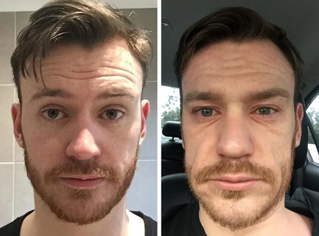 15. "Here's my girlfriend before and after I told her she was the most beautiful girl I know." ![]()