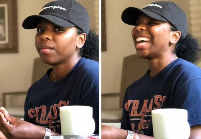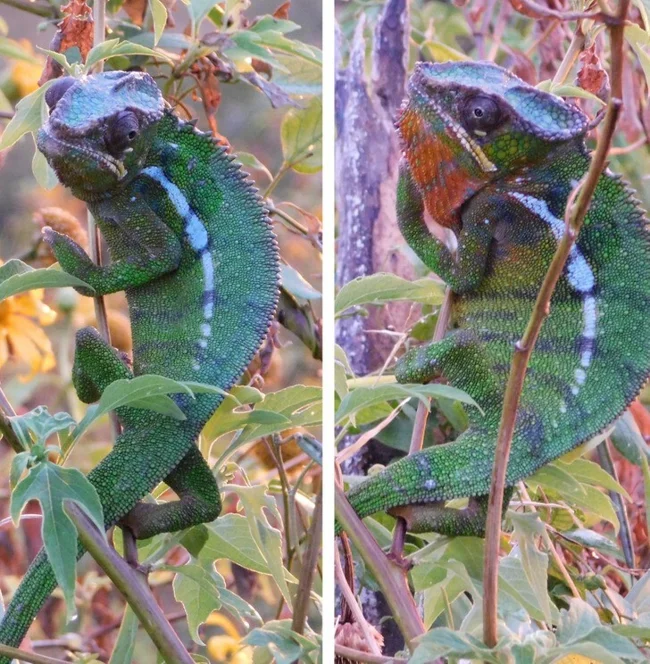 9. "My cat's face before and after my wife told her the highchair wasn't for her."