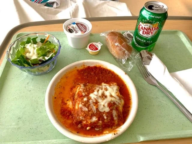 Meat lasagna for lunch in a maternity ward in Ontario, Canada. 6/10 because the salad was 3 bites worth!