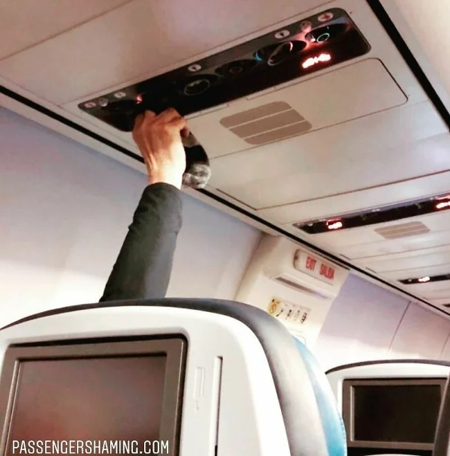 14. Passenger dries sweaty socks
