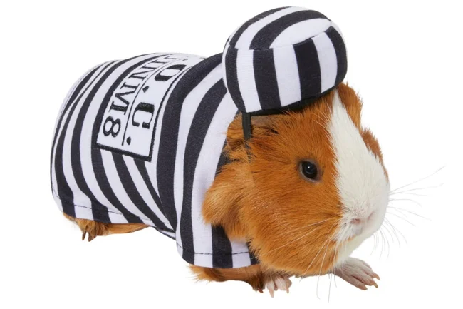 Moreover, the imagination of the animal’s owners is limitless, because okay, a deer or princess costume, but a prisoner’s costume?