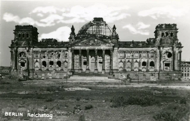 Ruins of the Reichstag building, Berlin, Germany, circa 1945.