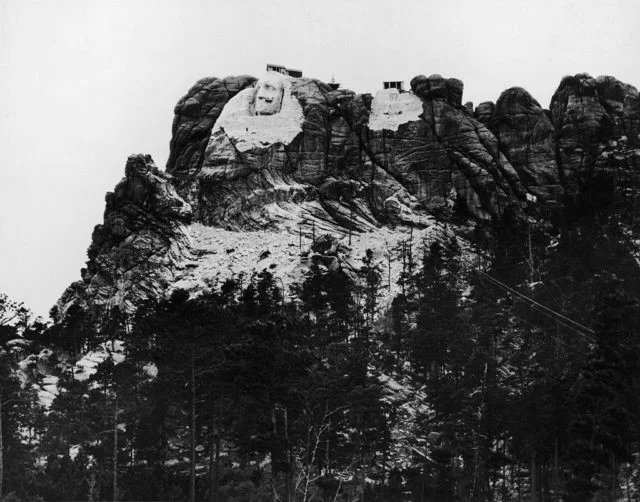 Construction begins on the Mount Rushmore National Memorial in South Dakota, circa 1929.