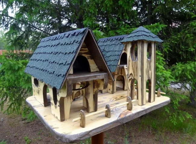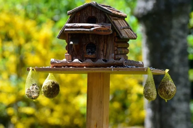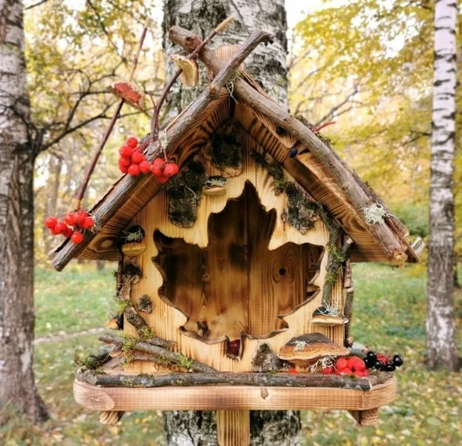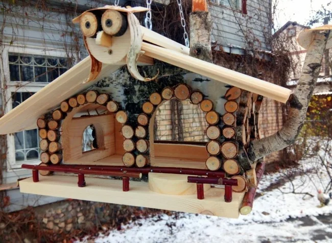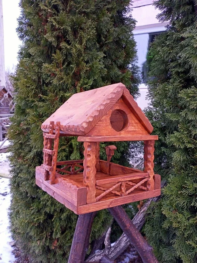 A feeder is a mobile structure into which food is poured, helping birds to survive the winter without experiencing hunger.