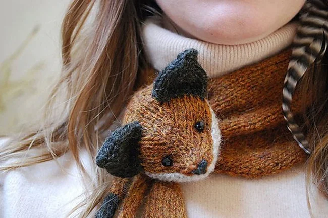 But besides ordinary scarves, there are really interesting and unique things, for example, in the form of a fox with dangling legs.