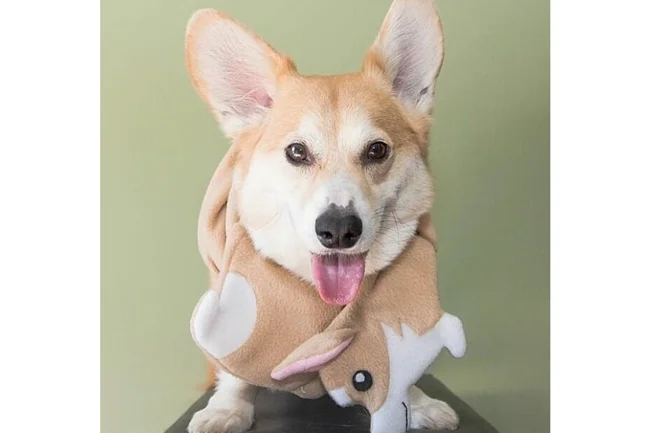 Well, the highest point of the hammer is a corgi scarf that can be worn by both a person and a dog.