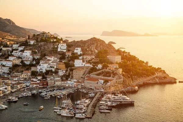 The island is located near Athens. Once you get off the water taxi, you'll be hard-pressed to find a car or even a bike on the island. Hydra's natural springs and secluded beaches can be reached on foot or by boat.