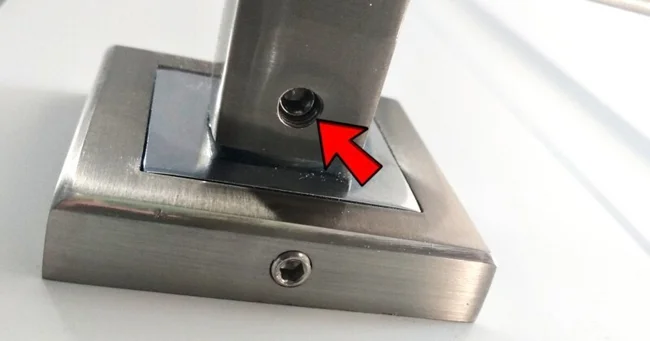 #2 Check your door handles once a year. Check the screws securing the door handle square. If necessary, tighten using a hex wrench. These screws are located on the underside of the handle (in most, but not all handles). If you don't tighten them, they may fall out over time.