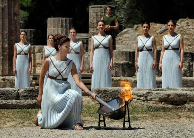 In order to ignite the Olympic flame, a parabolic mirror is used, which concentrates the sun's rays in the internal cavity. However, the mirror is unable to ignite the transparent gas because it does not absorb light. Therefore, a solid dark target at the end of the torch is heated. The target is usually a piece of celluloid film, which, being in the focus of the mirror, ignites at a temperature of 130 ° C, igniting the gas from a canister hidden in the torch body.