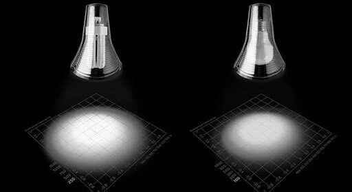 The structure of the light spot depends on the geometry of the lamp. The shape of the illuminated area is determined by the design of the lampshade, which limits the flow of light. And the clarity of the circle’s border depends on the compactness of the light-generating element: the smaller it is, the narrower the penumbra. For contrast of light and shadow, the flashlight must be quite bright.