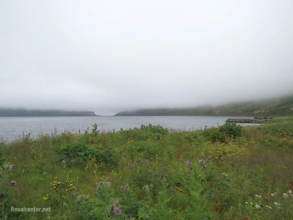 Broughton Bay is densely shrouded in fog. We never saw Uratman Volcano))