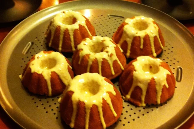 125 g flour, 2.5 g dry yeast, 20 g butter, 25 g powdered sugar, 62.5 ml milk, 0.5 pcs egg, 0.5 pcs yolk, 0.5 tbsp salt, 0.5 tbsp rum and 0.5 tbsp lemon zest, vanilla.