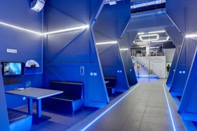 The entire main geek scene of the city gathers here. The bar itself is decorated in the style of a spaceship.