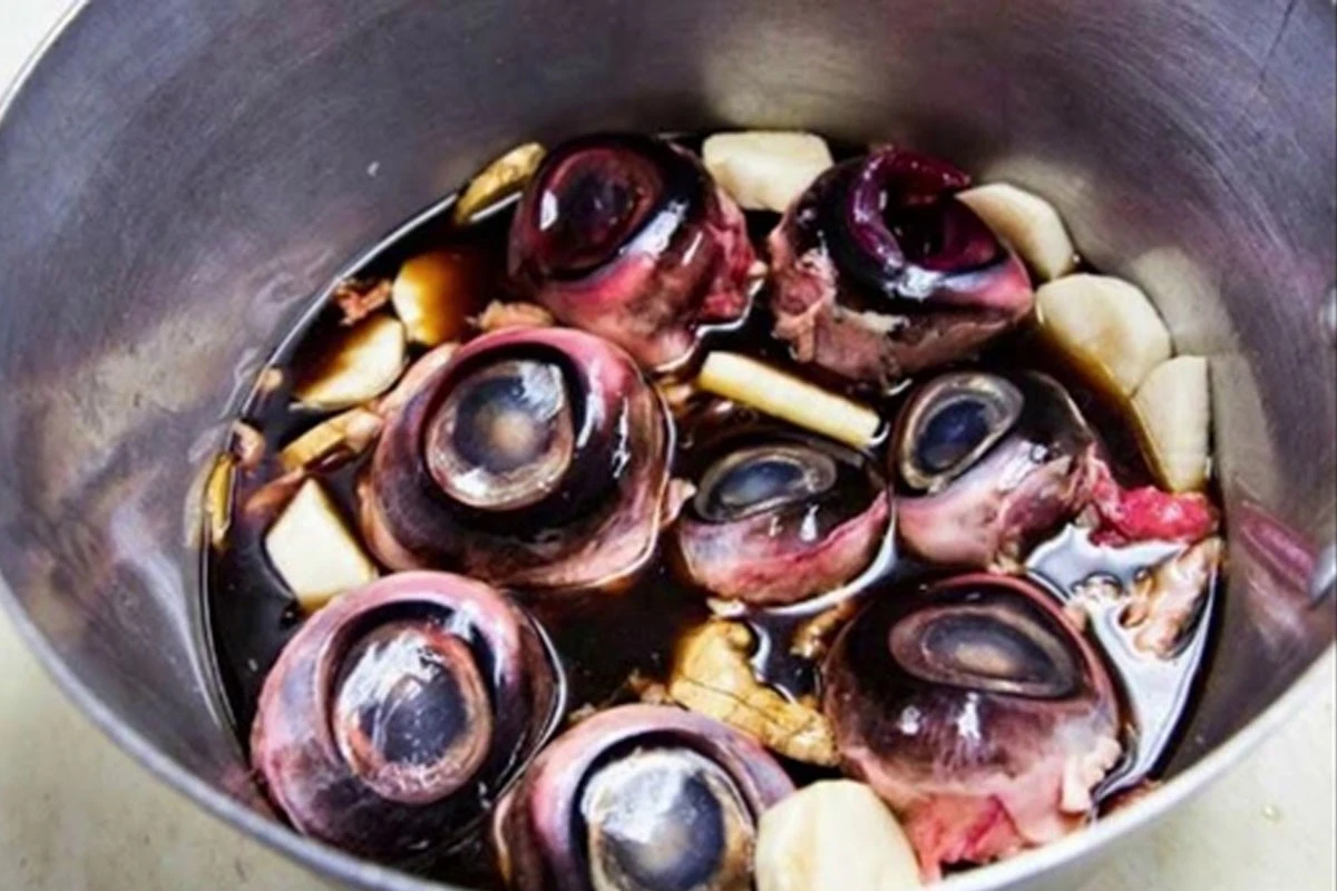 The preparation method is as simple as three kopecks: you need to throw the eyeballs into salted boiling water, and when serving, pour soy sauce over them.