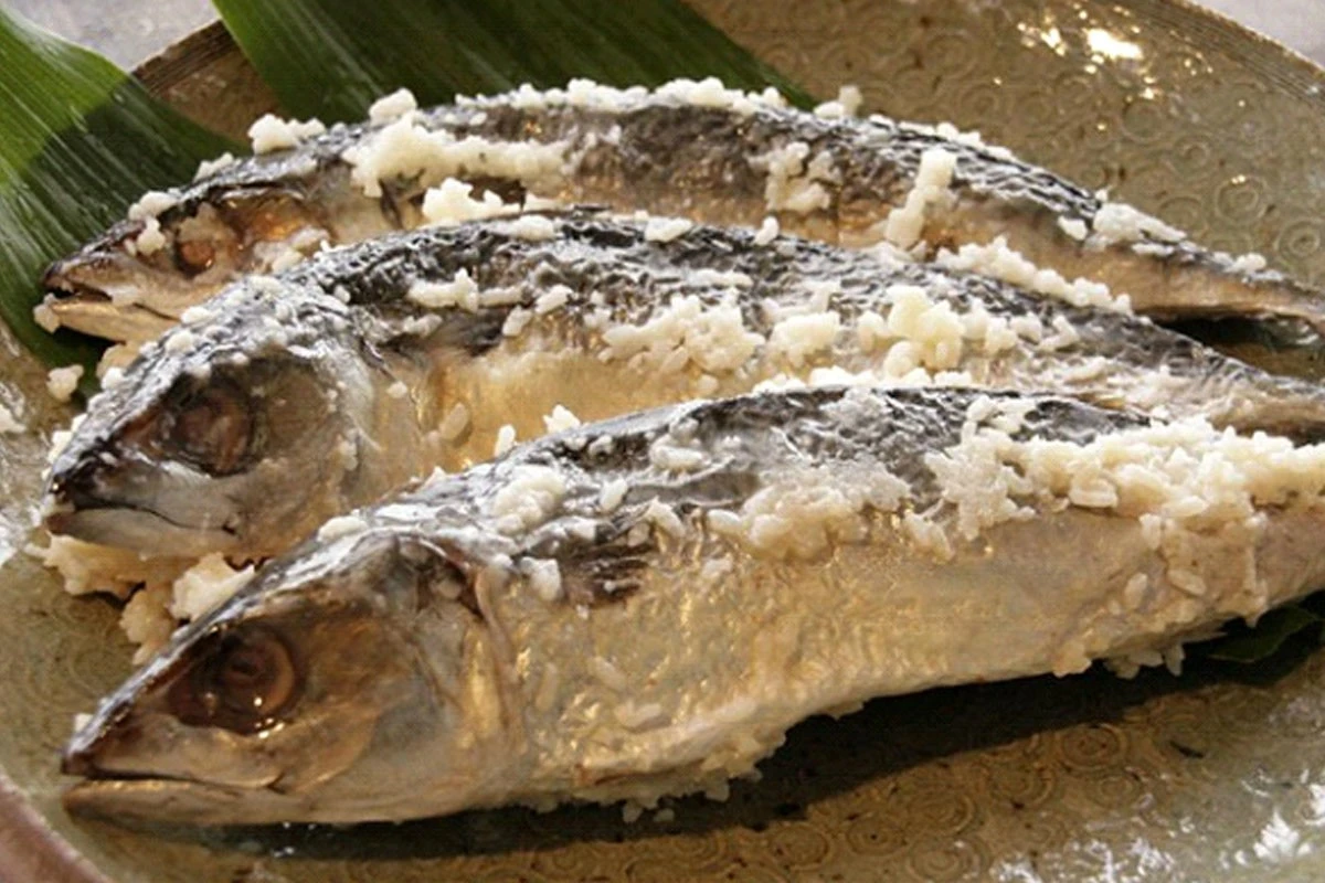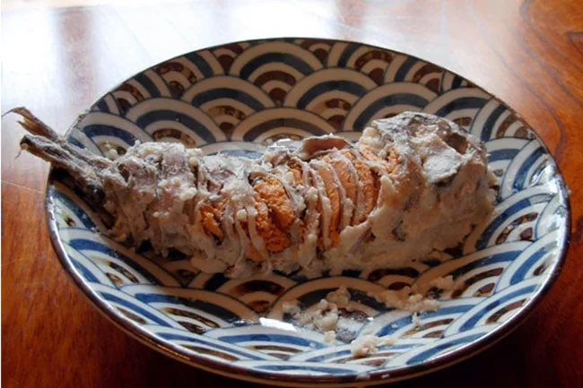 Next, the fish is marinated in salt for a month, then boiled rice is placed inside the crucian carp, after which it is again sent to the closet for six months. It is worth noting that the longer it sits, the more it will taste like moldy cheese.