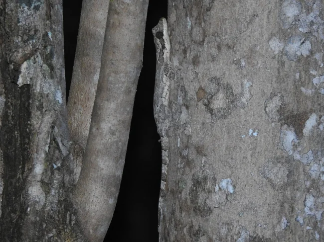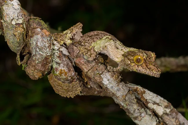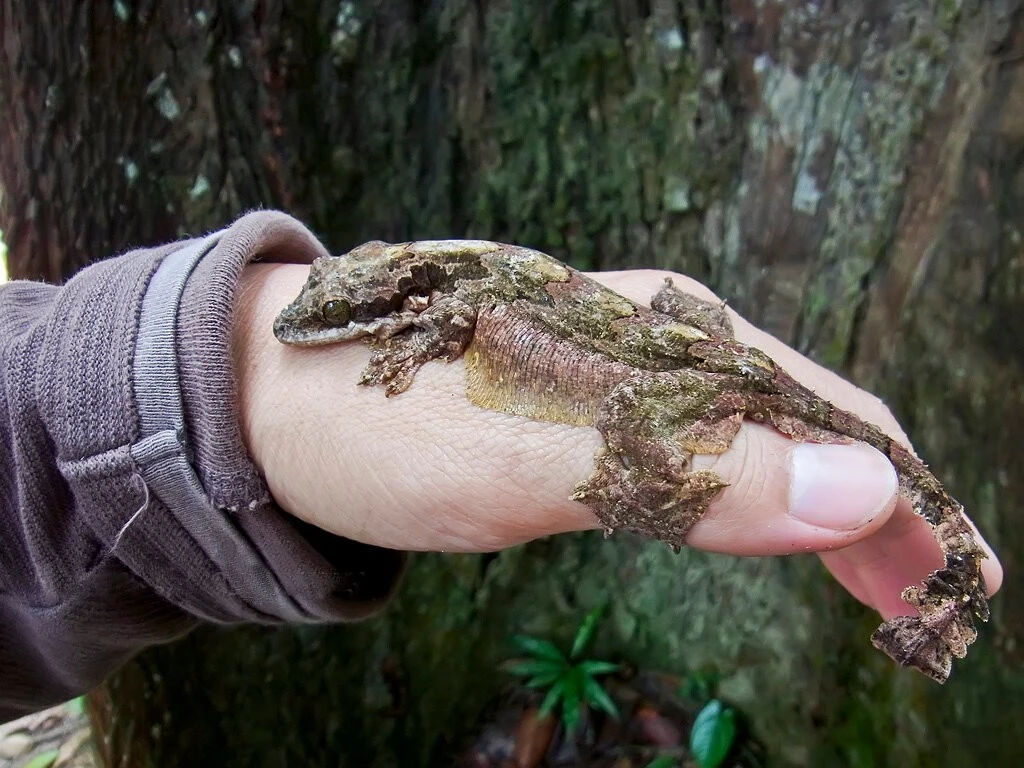 If you don’t look closely, the miniature lizards, no more than 20 cm long, look more like a piece of bark or a scrap of some kind of garbage. Against the background of the camouflage suit, only giant, unblinking eyes stand out. Geckos do not know how to blink, but they somehow need to remove dust from their mirrors. A large, long tongue helps them with this. Are you weak to lick your own eye? But for them it’s normal, they do this every day.