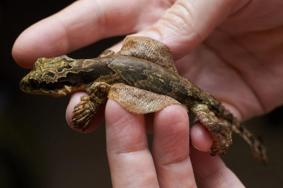 But before you fly from one tree to another, you must first climb that tree. The gecko's sucker fingers help with this. Thanks to their unique coating, these guys crawl onto absolutely flat vertical surfaces.