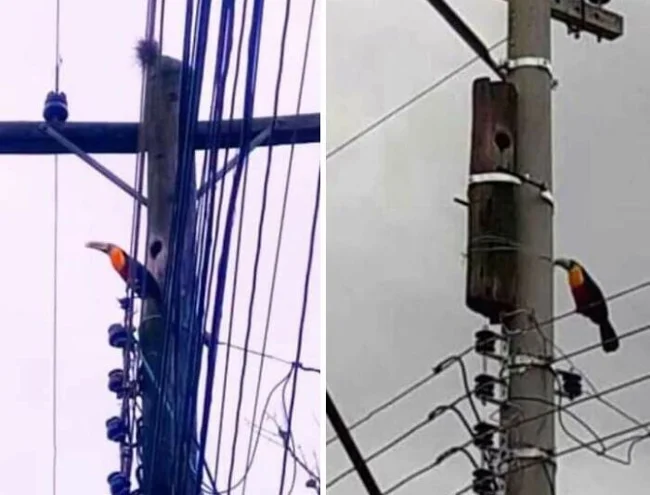 The wooden pillar was replaced with a concrete one, but the toucan's house was preserved
