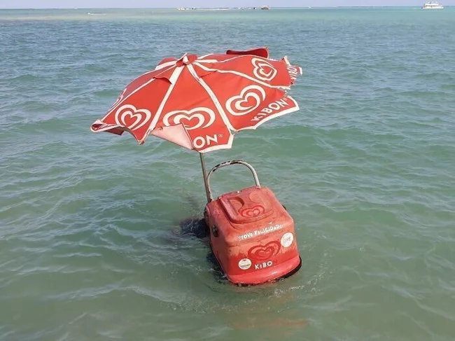 The owner of this cart sells ice cream right in the ocean, near the coral rice of Maragoga ![]()