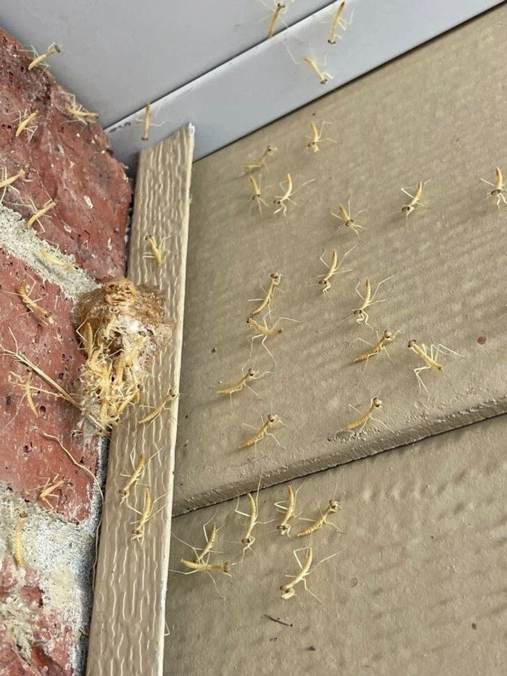 “Found a mantis nest on my porch.”