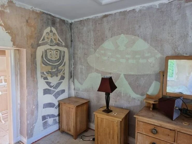 "Strange mural found after stripping paint from walls in my aunt's new house"