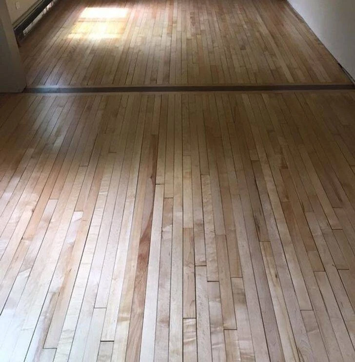 “We wanted to cover the floor with laminate. When we removed the carpeting, we discovered maple flooring from the early 20th century."